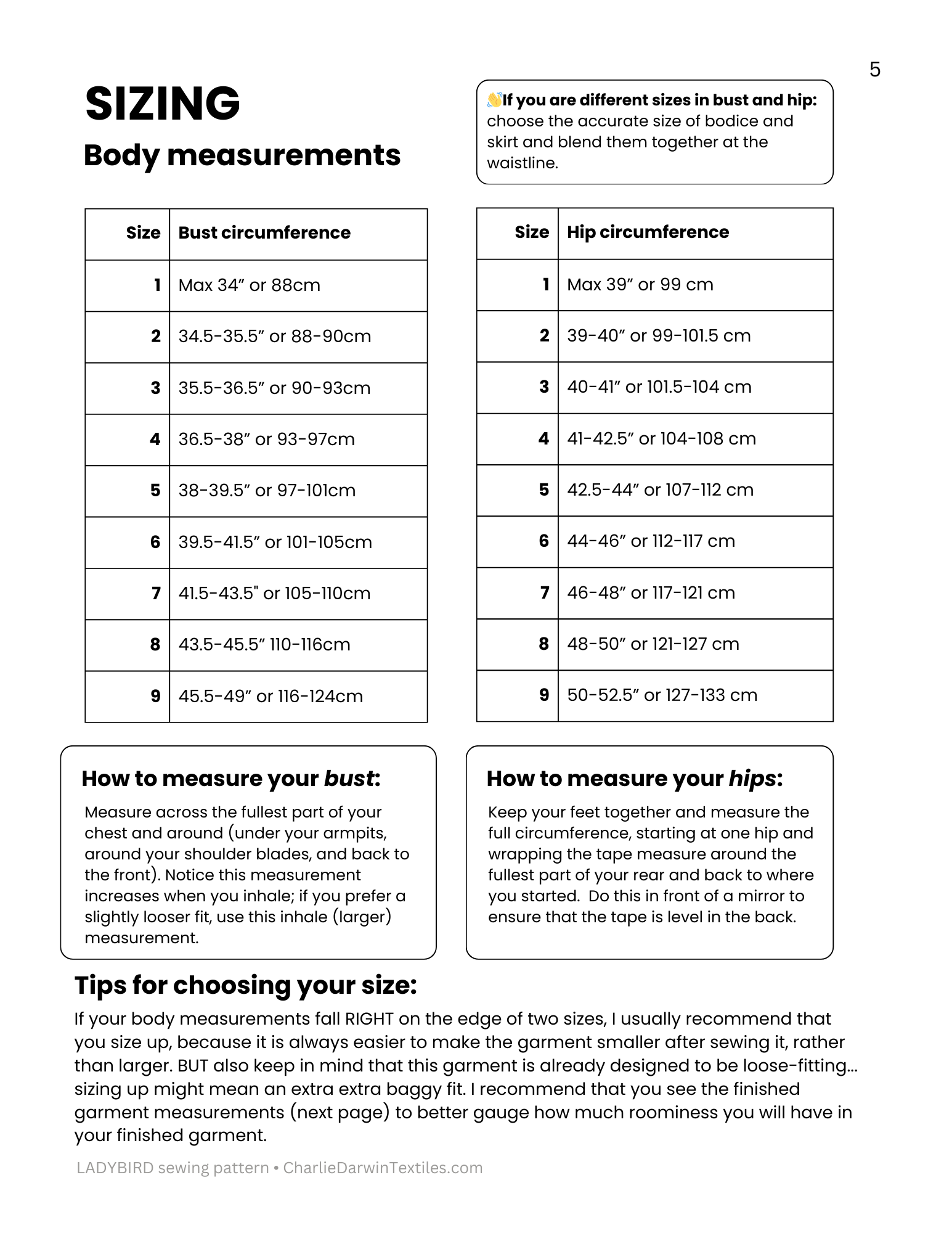 • Choosing your size