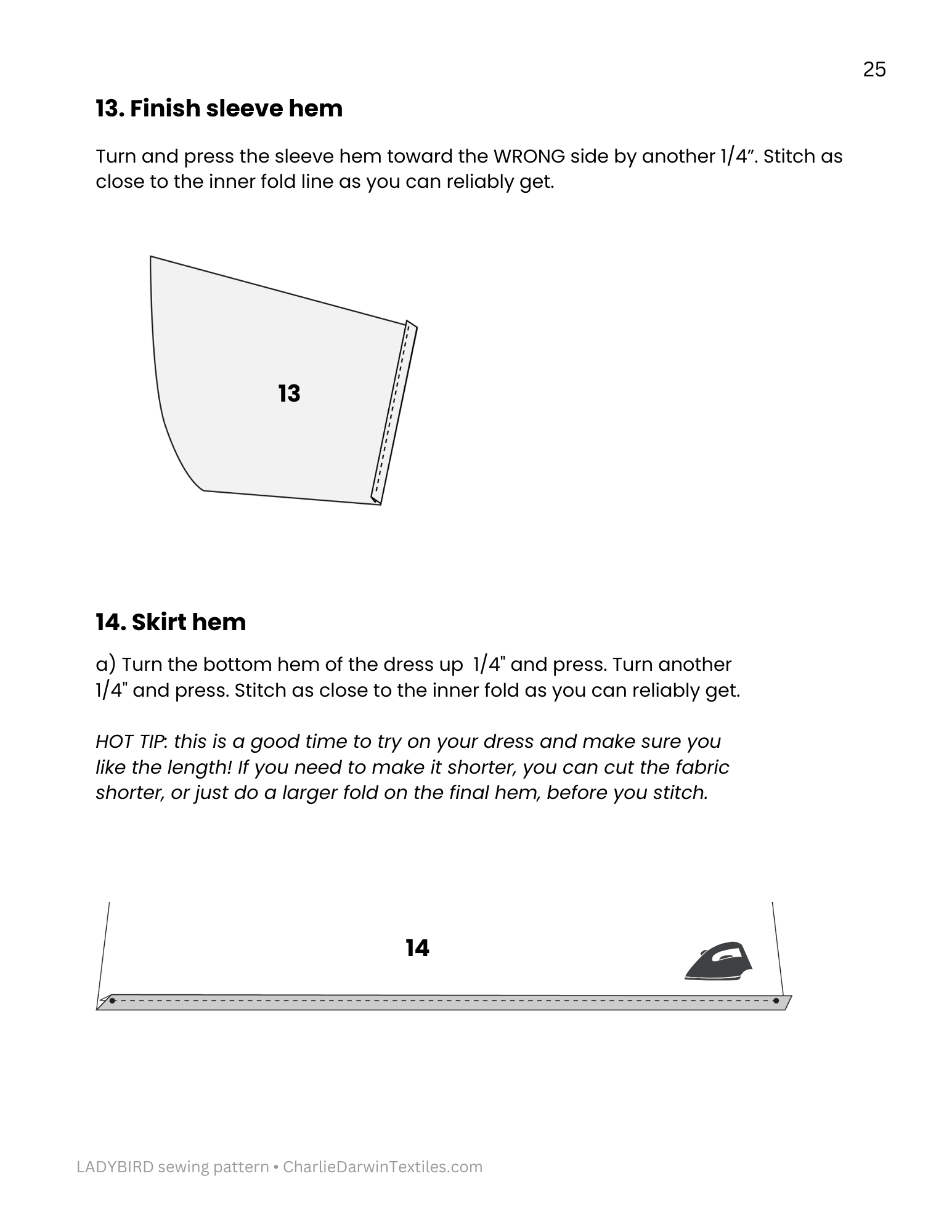 Stay-stitch your neckline Prepare the waist ties Skirt center back Bodice pleats Waist seam Center front edge Shoulder seam Collar Sleeves Pockets Side seams Hems Buttons
